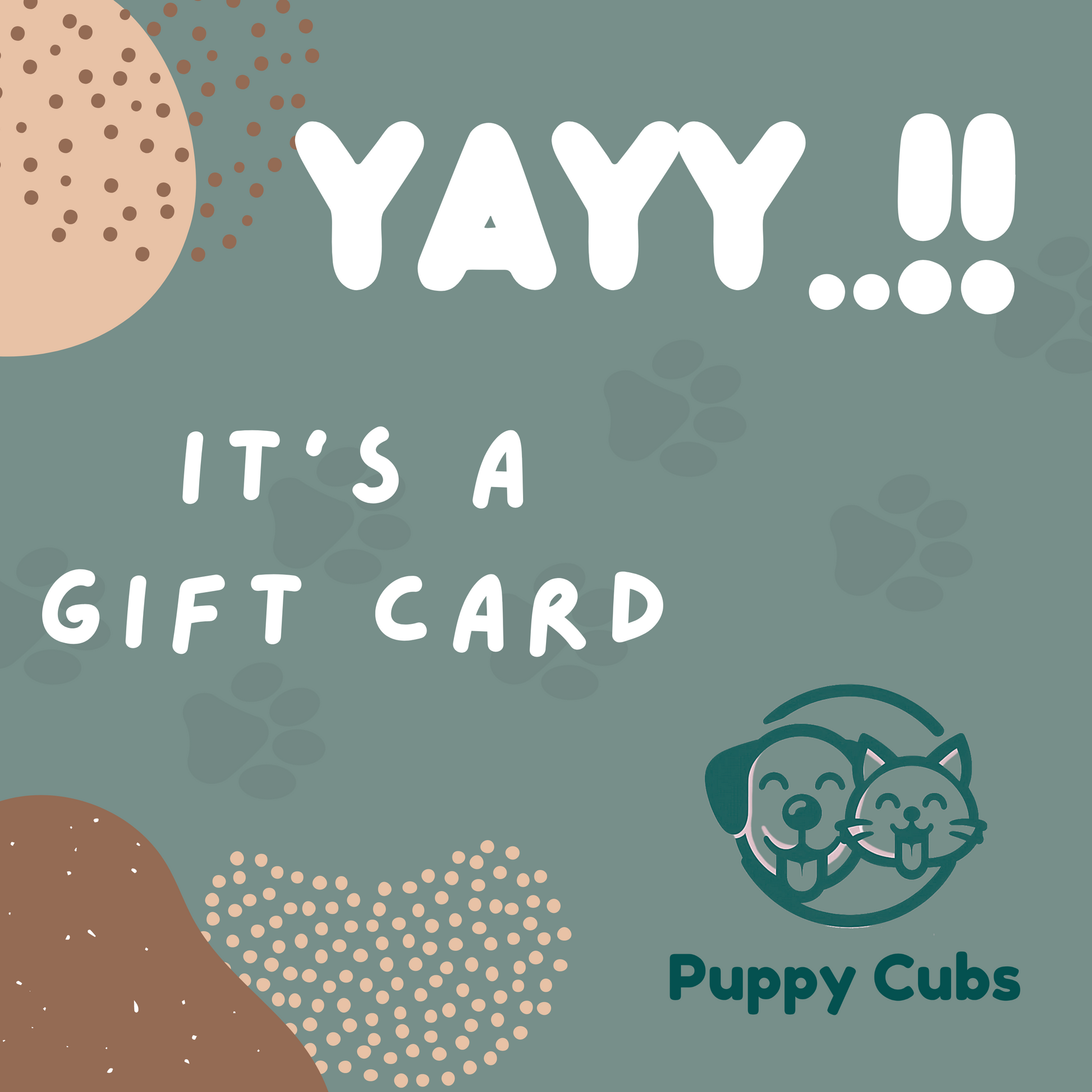 Shower your love with Puppy Cubs! Our gift card makes the perfect gift for any pet parent. Treat your guests to all the pet essentials like food, toys, and more. It's the gift that keeps on giving (and wagging)! It's pettin' time any day, every day!!