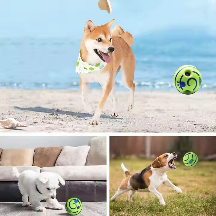 Get ready to unleash the giggles with The Wobbly Giggler, the ultimate interactive toy that keeps dogs of all sizes entertained for hours! Designed to wobble, and make funny sounds with every roll, this wobble wag giggle ball is the perfect blend of fun and training for your furry friend.